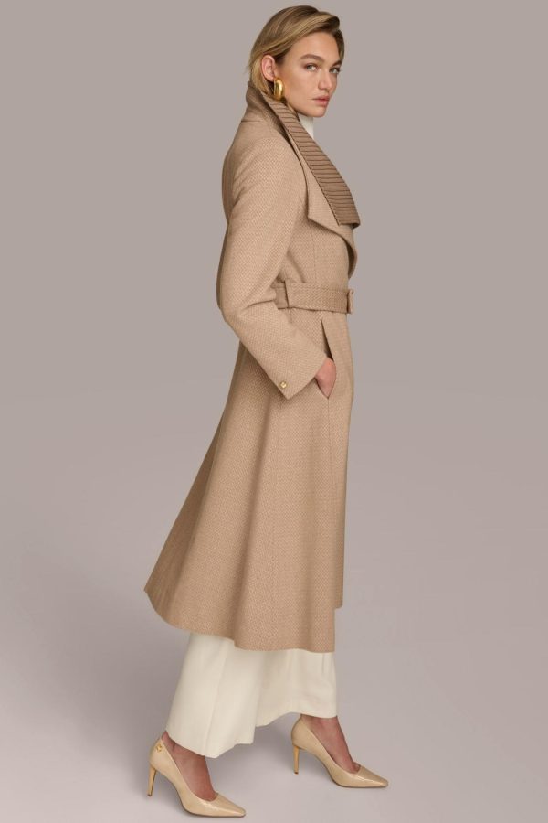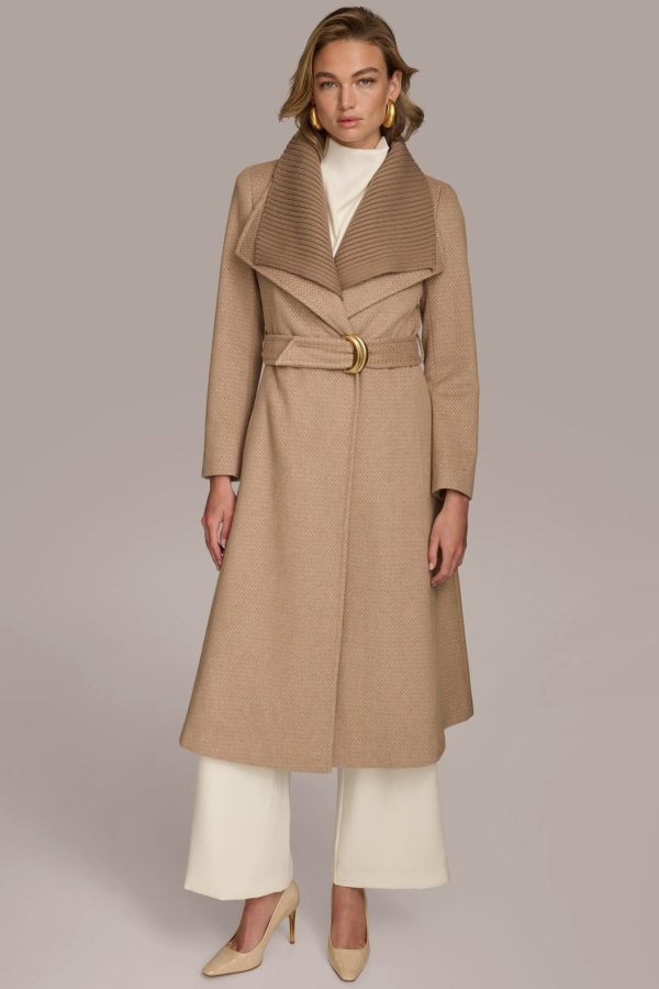 A classic cold-weather silhouette with a twist. Crafted in a cozy wool-blend, this coat features a self-tie belt at the waist, a foldover, layered collar, and a statement flared silhouette.