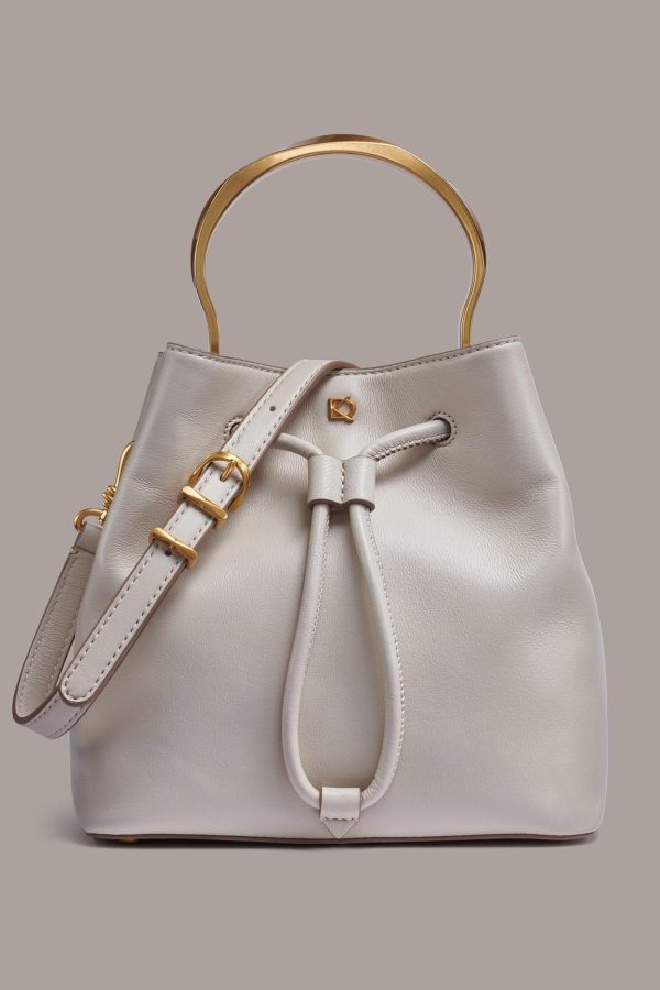 A quintessential bucket bag from Donna Karan in a just-right size for every day. It’s updated with a statement-making hardware top-handle, and pairs well with just about everything in your closet.